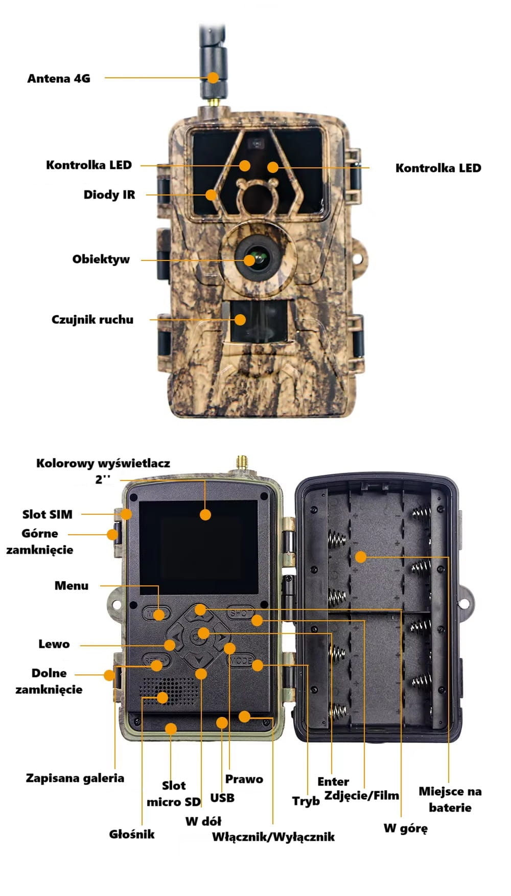 Kamera leśna fotopułapka 4G aplikacja 8K z POLSKIM MENU.