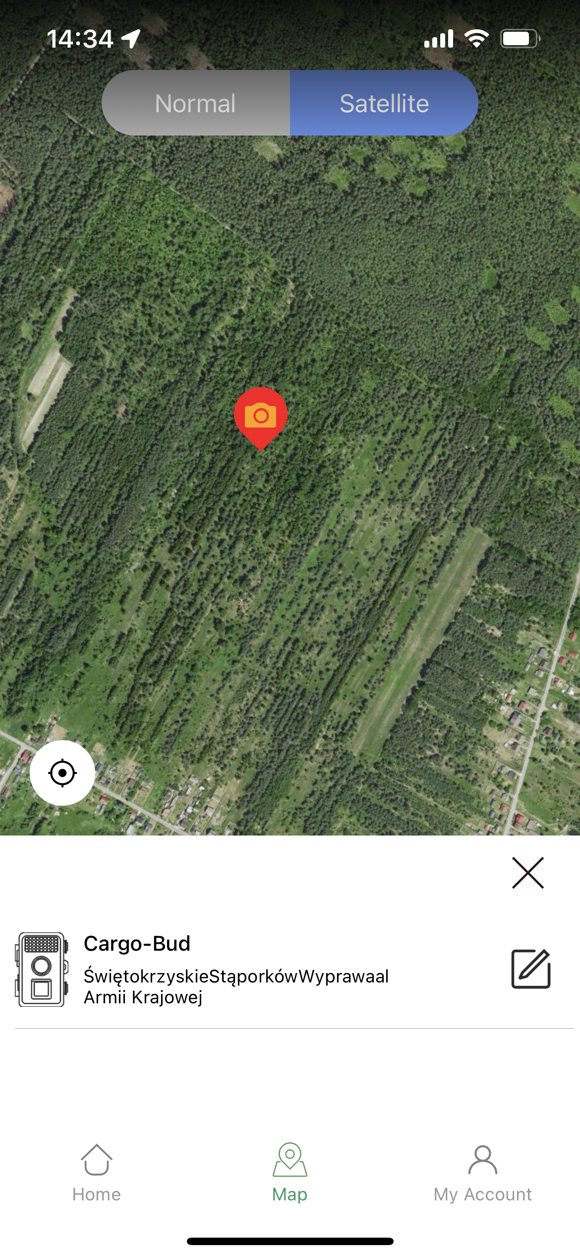 ✔ Możliwość oznaczenia na mapie w aplikacji gdzie została zamontowana kamera, jest to bardzo przydatna funkcja zwłaszcza w lesie.