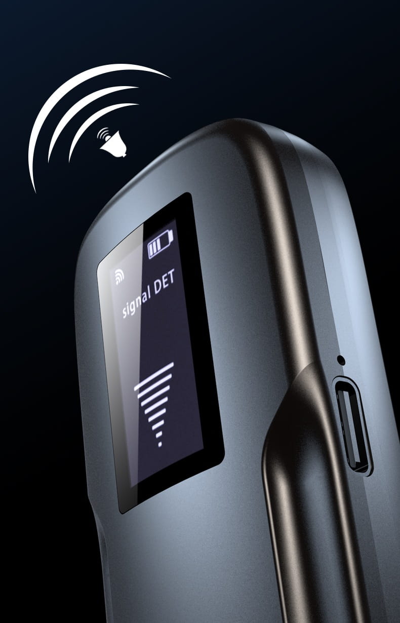 ✔ Wykrywanie bezprzewodowych urządzeń podsłuchowych zainstalowanych w samochodzie lub pomieszczeniu.