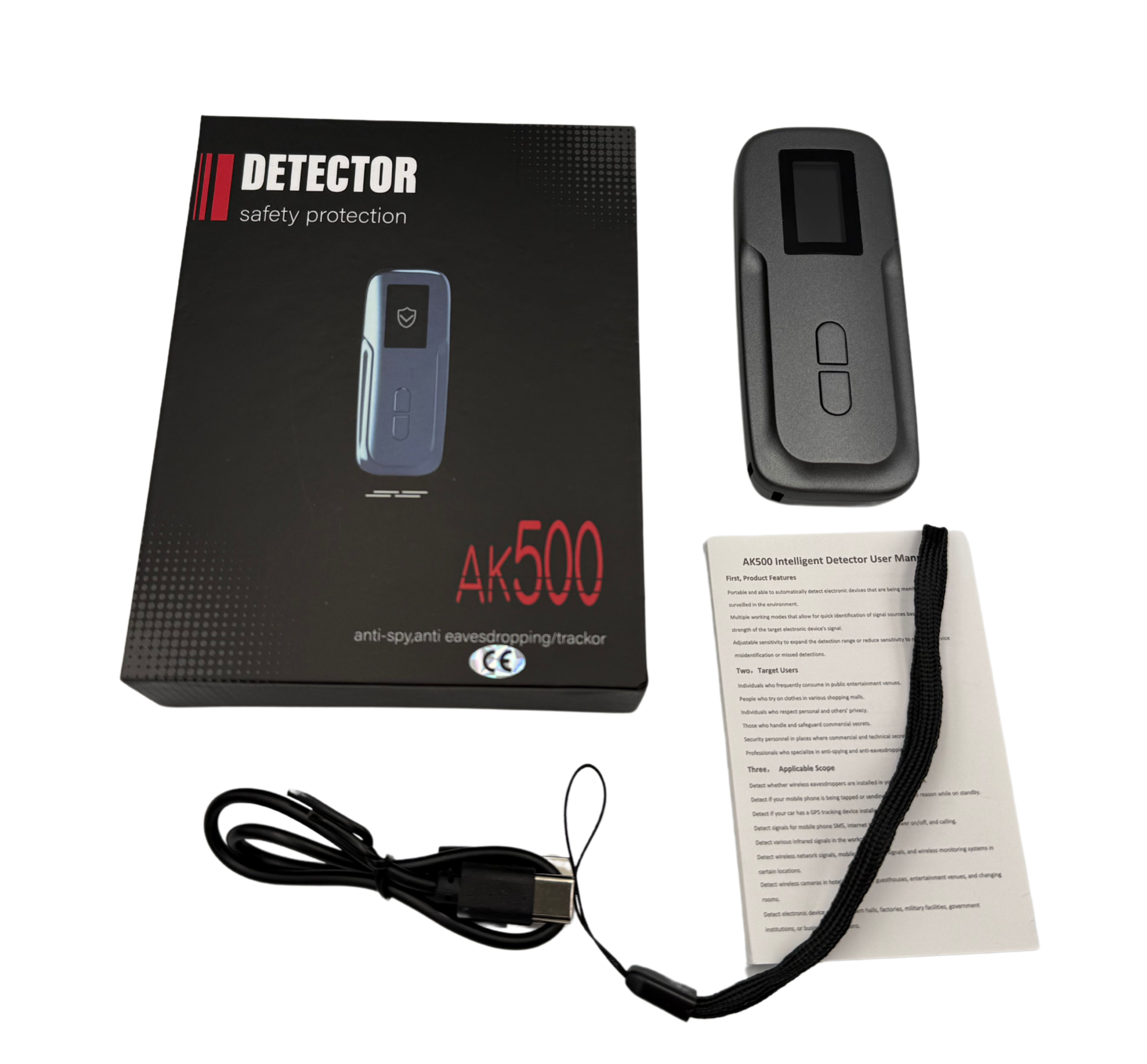 Przenośny detektor skutecznie wykrywa ukryte lokalizatory GPS, kamery i podsłuchy. Oferuje różne tryby pracy, regulowaną czułość i szeroki zakres wykrywania (1 MHz - 6 GHz, do 10 m). Posiada ekran 0,96" TFT, baterię 200mAh (do 2h pracy) i ładowanie USB-C. W zestawie: wykrywacz AK500, kabel USB-C, instrukcja, smycz i oryginalne opakowanie. Idealny do ochrony prywatności, w pojazdach i pomieszczeniach.